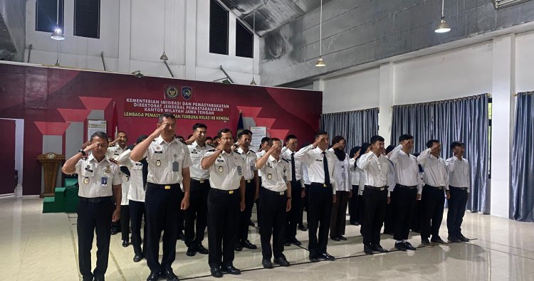 Kendal – Seluruh jajaran Aparatur Sipil Negara (ASN) Lembaga Pemasyarakatan (Lapas) Terbuka Kelas IIB Kendal mengikuti apel pagi bersama secara virtual di lingkungan Kementerian Koordinator Bidang Hukum, Hak Asasi Manusia, Imigrasi, dan Pemasyarakatan (Kemenko Kumham Imipas) Republik Indonesia, Senin (12/1/2026).